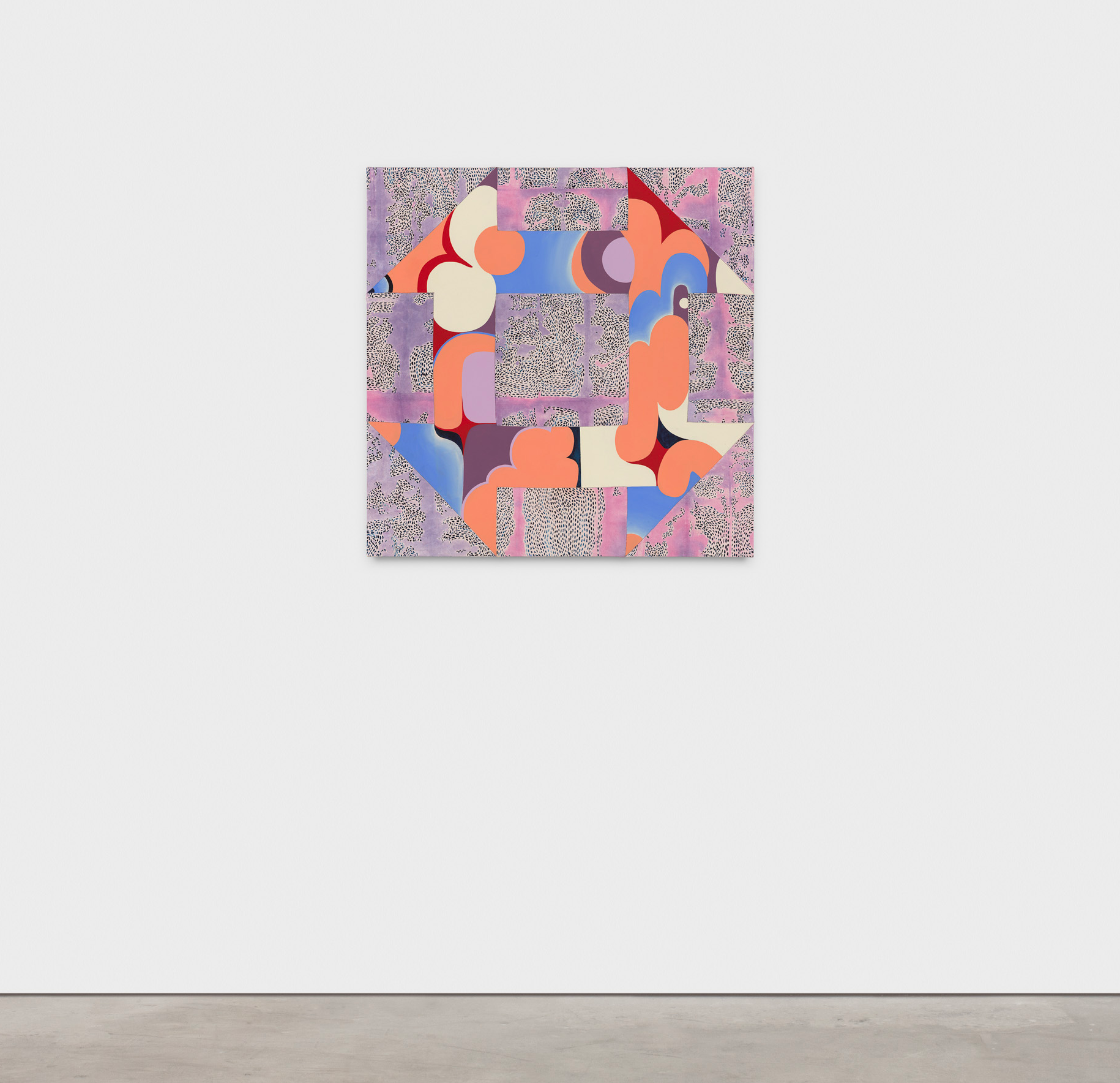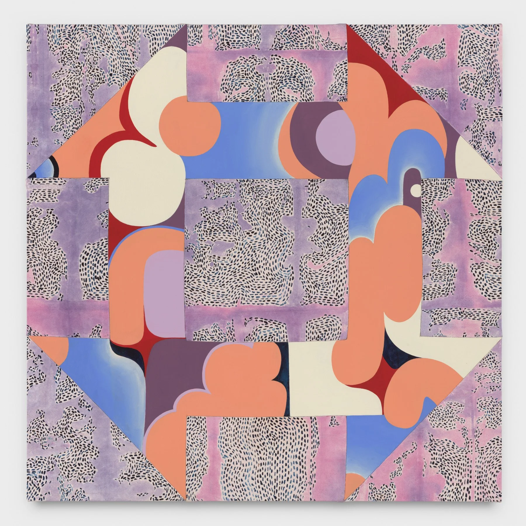 View fullsize Churn Dash, 2022, acrylic and dye on sewn linen and canvas, 36 x 36 inches View fullsize View fullsize View fullsize